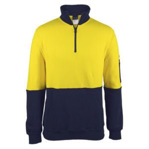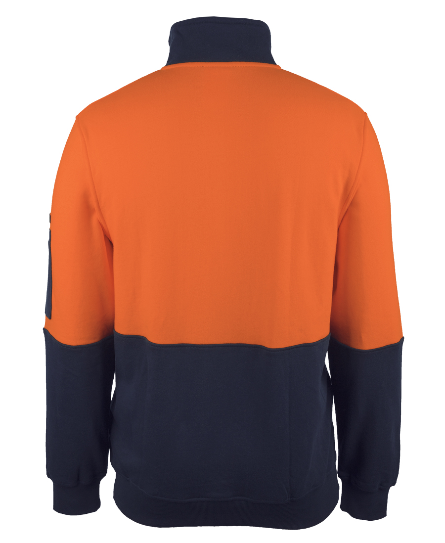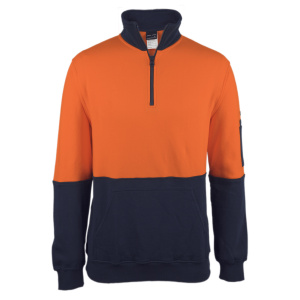 Stay comfortable and visible in the JB’s Hi Vis 310 Cotton 1/2 Zip Fleece. This classic fit fleece is crafted from 100% cotton fabric with 310gsm brushed fleece for warmth. Features include ribbed sleeve cuff and basque, non-metal zipper, mobile pocket inside kangaroo pocket, and pen pocket on the sleeve. Complies with safety standards AS/NZS 1906.4:2010 and AS/NZS 4602.1: