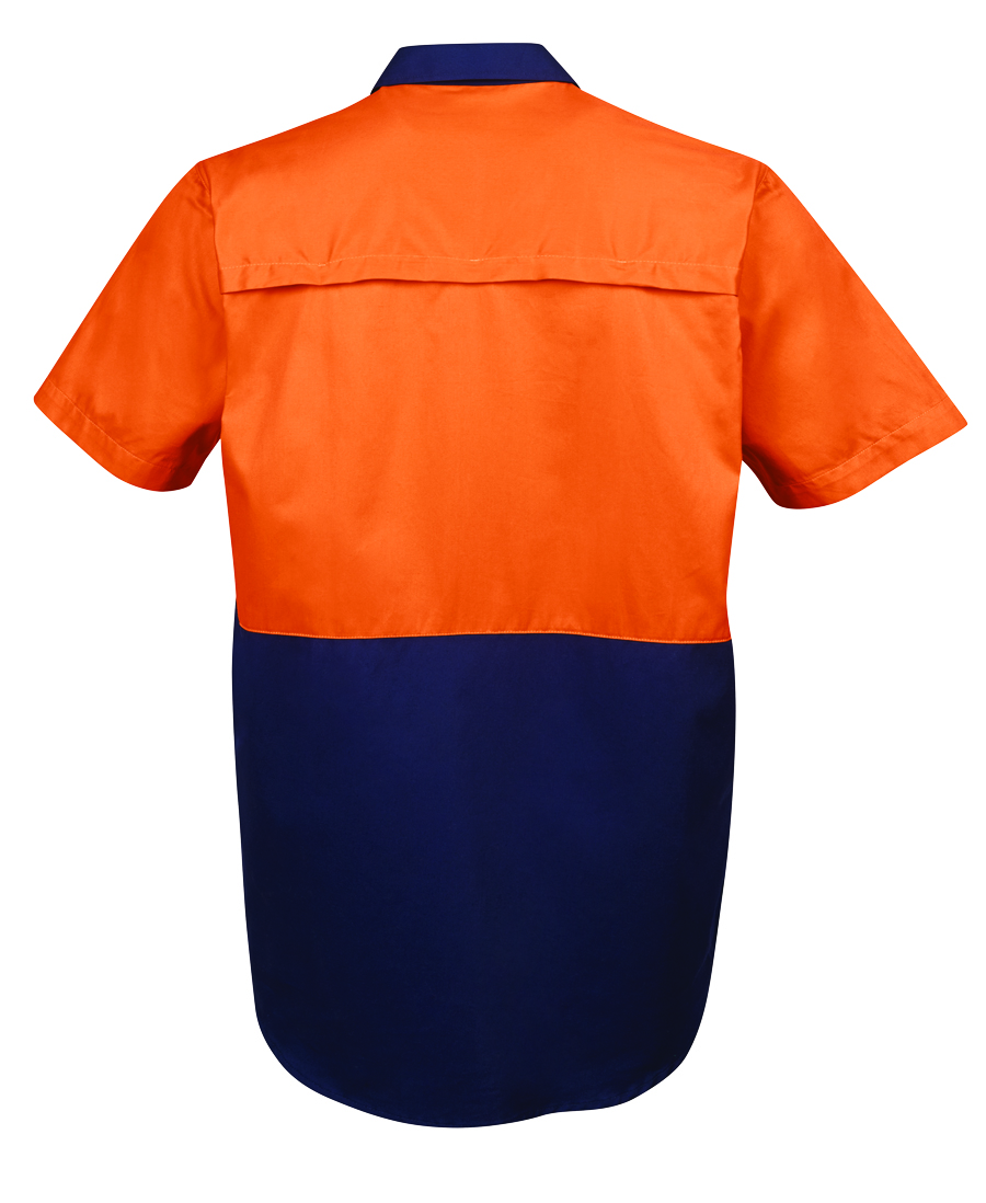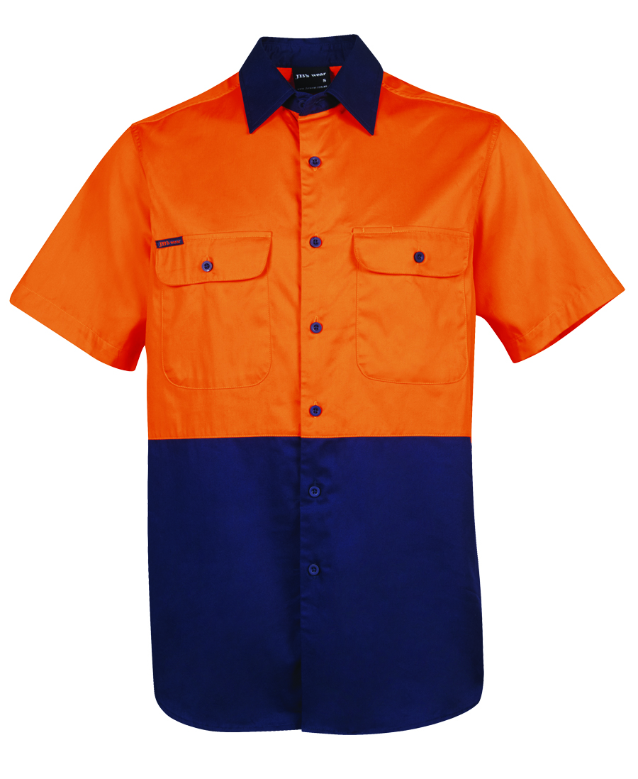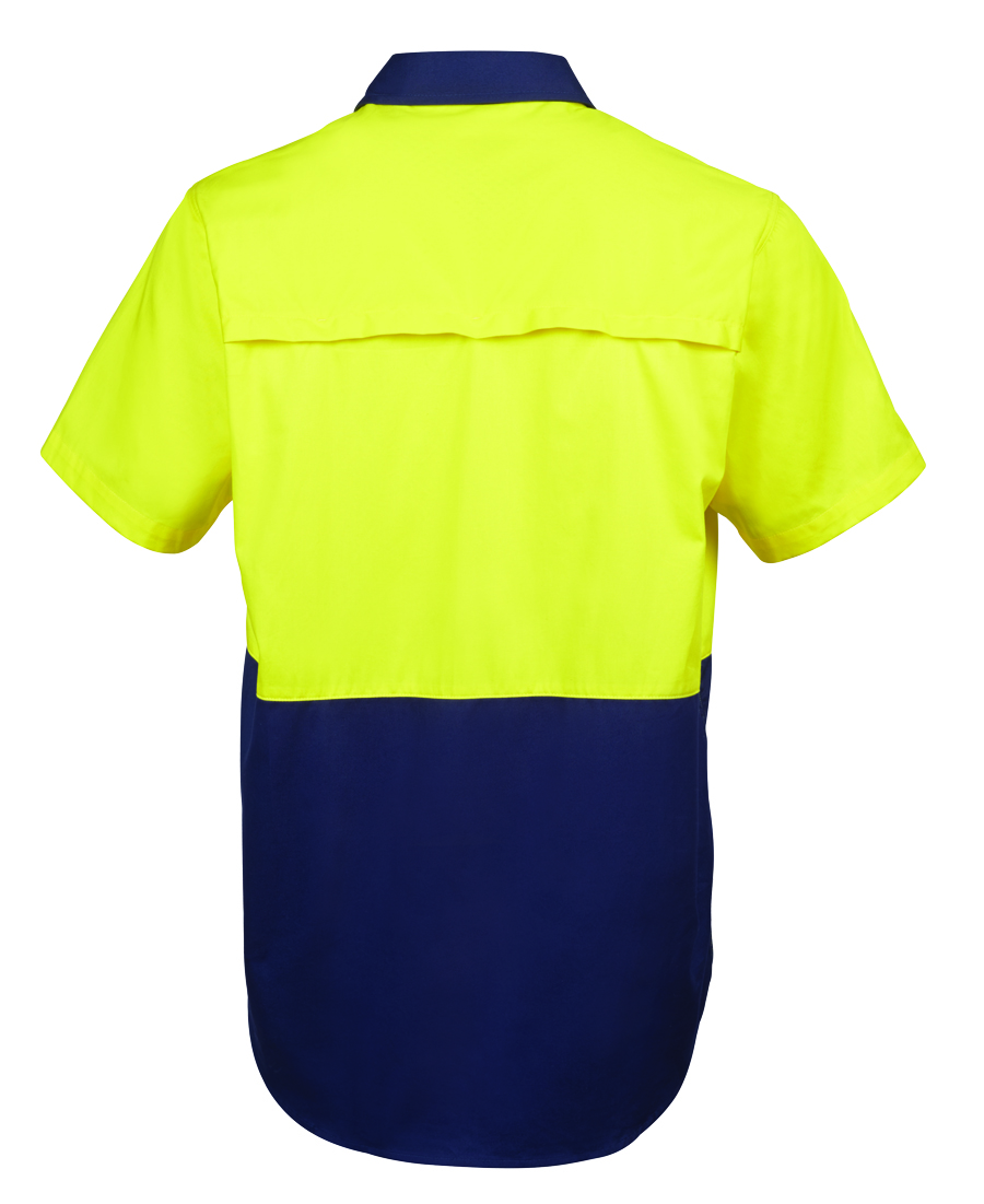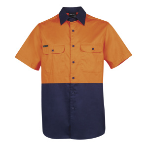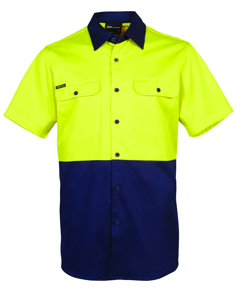 Stay visible and comfortable in the JB’s Hi Vis S/S 150G Work Shirt. This classic fit shirt is made from 100% cotton with a 150gsm double pre-shrunk drill for ultimate comfort. It meets UPF Protection standards and features cooling gussets, front pockets, and a contrast panel design. Available in a range of sizes for the perfect fit. Perfect for work environments that require high visibility and durability.