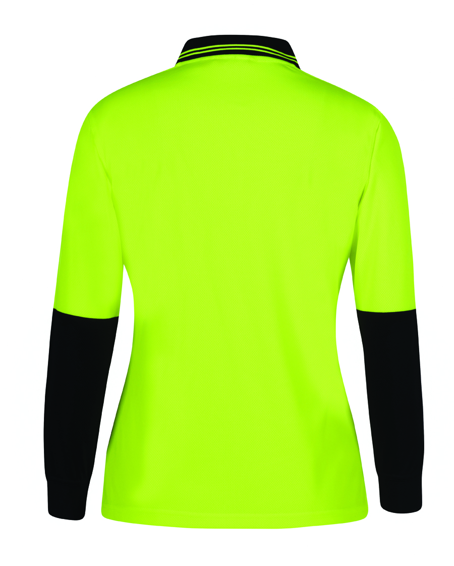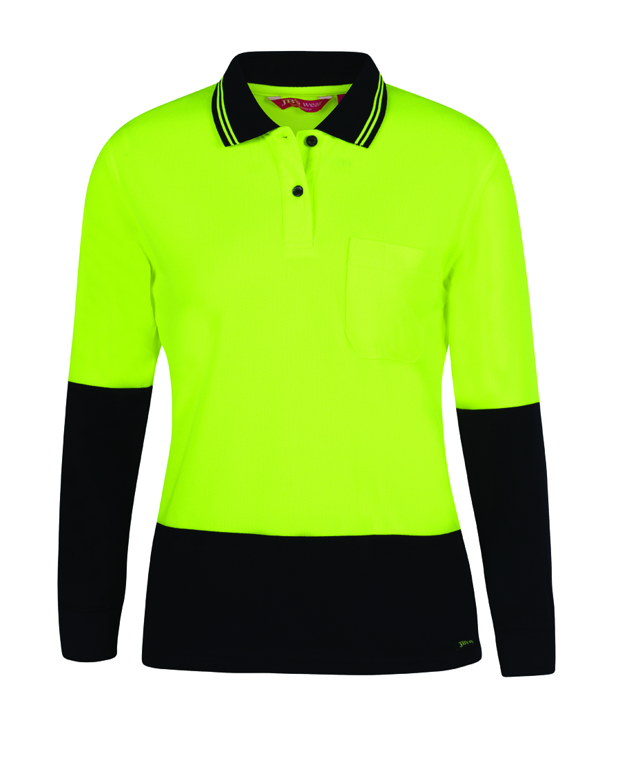 Stay safe and stylish in the JB’s Ladies Hi Vis Long Sleeve Comfort Polo. Made from durable 100% polyester micro mesh fabric, this polo features JB’s Dri™ moisture-wicking technology to keep you cool and dry. With UPF 50+ protection, reinforced chest pocket, and easy care fabric, this polo is both functional and comfortable. Available in sizes 8 to 26, this polo is perfect for those who value both safety and style.